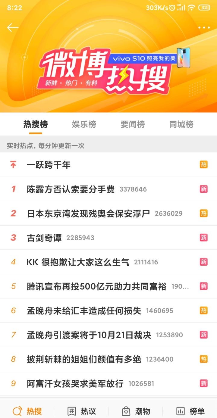 该话题一度位于新浪微博热搜榜前列。然而在8月19日早晨8点左右,该热搜消失。据查证,不仅热搜前十中没有,热搜前五十也没有。